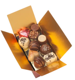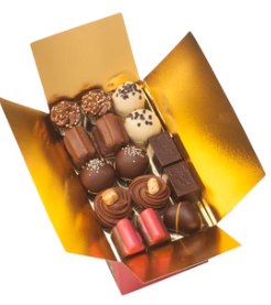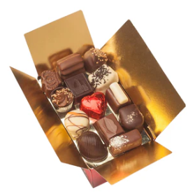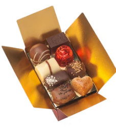 Ballotin met handgemaakte alcoholvrije Belgische pralines. Een mix van fondant, melk- en witte chocolade met boter-, praliné-, ganache-, marsepein- en fruitvullingen. Om samen van te genieten!