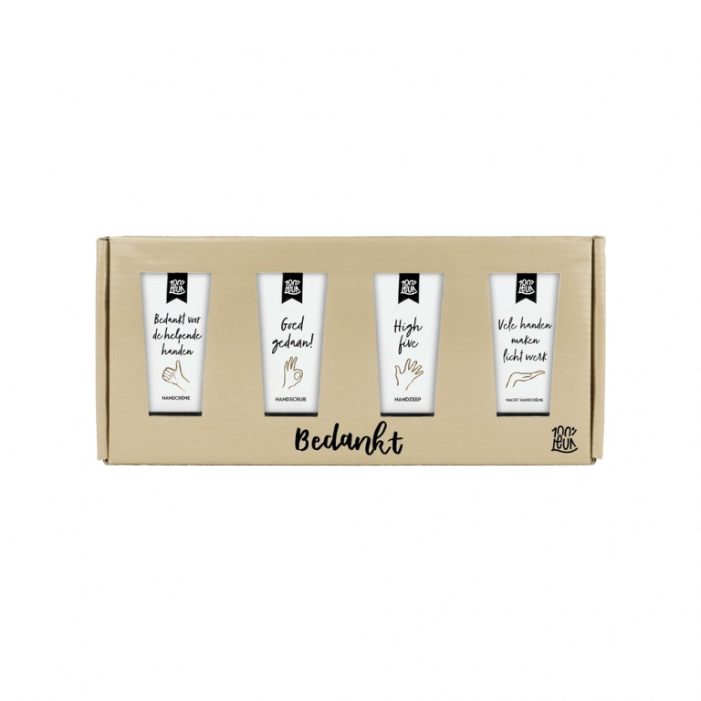 Een mooi gebaar om de vrijwilligers te bedanken voor al hun harde werken. Een middag helpen in het verzorgingshuis of de boodschappen halen voor de buurvouw? Dit pakket is een mooi gebaar om je waardering mee uit te spreken. Een verzorgende handcrème, handzeep, handenscrub en nacht handcrème. met de geur van shea butter om de lieve helpende handen eens flink te verwennen. Heb je geen tijd om iemand een cadeau te geven of woont degene op afstand? Geen probleem. Je kunt deze cadeaubox ook thuis laten bezorgen. Net zo makkelijk!