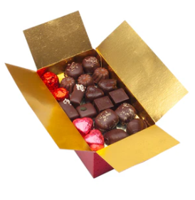 Valentino chocolade: BallotinBallotin met zo’n 70 handgemaakte Belgische pralines. Een mix van fondant, melk- en witte chocolade met boter-, praliné-, ganache-, marsepein- en fruitvullingen. Om samen van te genieten!